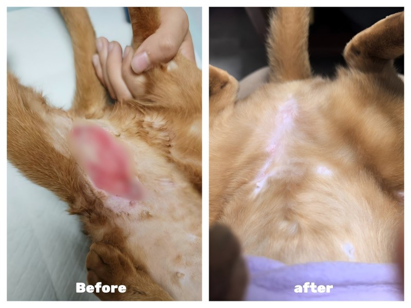 पशुवैद्यकीय लेसरसह उपचार करण्यापूर्वी आणि नंतर तुलना